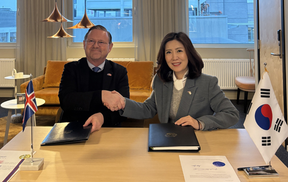 서민정 주노르웨이대사(아이슬란드 겸임·오른쪽)와 허그니 크리스티안손(Hogni Kristjansson) 주노르웨이 아이...[제1297호]2025-12-05 09:40