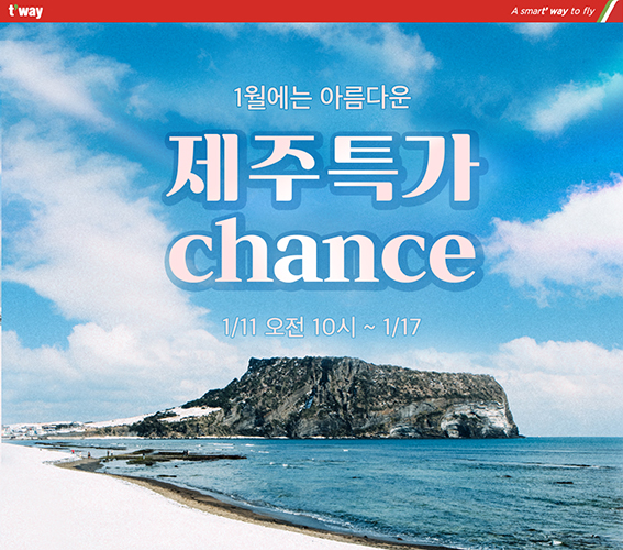 - 티웨이항공, 1월 국내선 항공권 특가 이벤트 실시!
