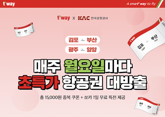 - 티웨이항공, 9월 국내선 특가 항공권 이벤트 실시