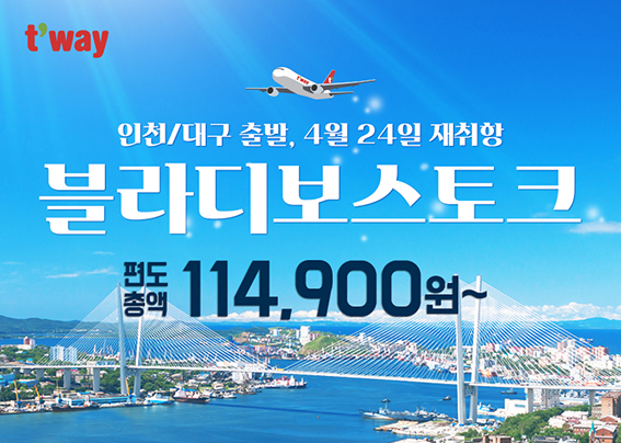 - 티웨이항공, 4월부터 운항하는 블라디보스토크 노선 특가 이...