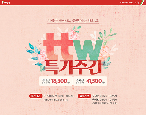 - 티웨이항공, 1월 특가 주간 ttw 이벤트를 활용하자!