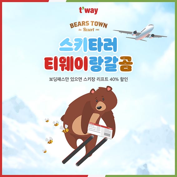 티웨이항공 탑승권 제시하면 베어스타운 리프트, 렌탈, 객실 등 할인 혜택 제공