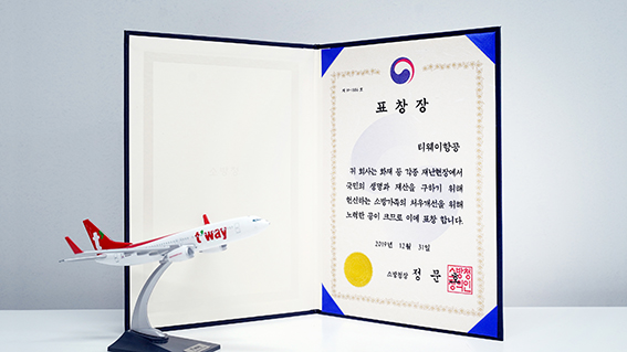 - 티웨이항공, 소방청장 표창 수상