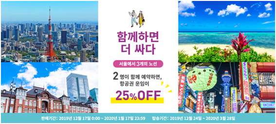 내년 1월17일까지 인천-도쿄, 오사카, 오키나와 대상 25% 할인 ...[제1081호]2019-12-17 20:32