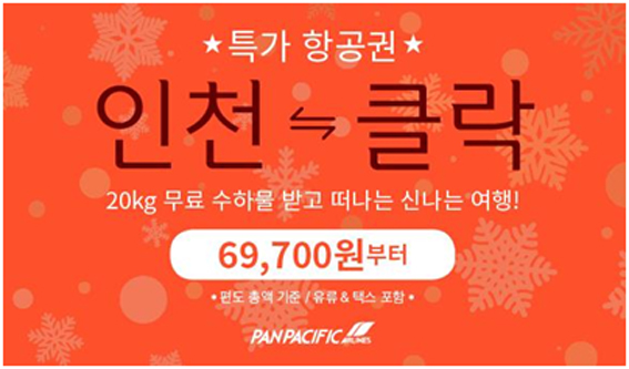 - 팬퍼시픽항공, 인천-클락 연말 특가 프로모션 진행