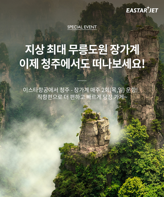 - 이스타항공, 동계시즌 청주-장가계 노선 스케줄 오픈