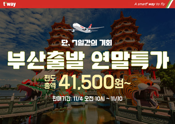 - 티웨이항공, 단 7일간 부산 출발 노선 연말 여행 특가 제...