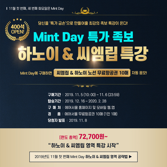 - 에어서울, 최저가 날짜 콕 집어 알려주는 ‘민트데이’ 이벤...