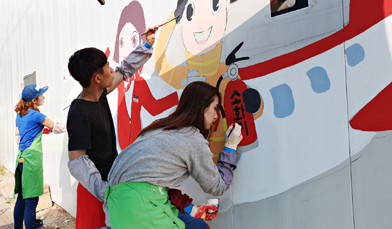 - 이스타항공, 임직원 봉사단 벽화 그리기 봉사활동 진행
