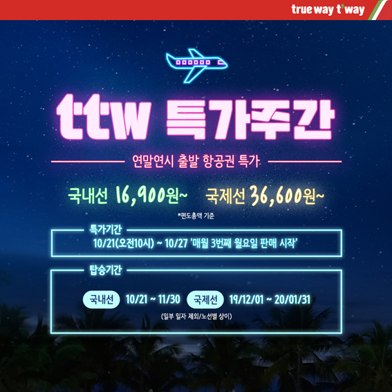 - 티웨이항공, ttw 특가주간에서 미리 준비하는 연말연시 여...