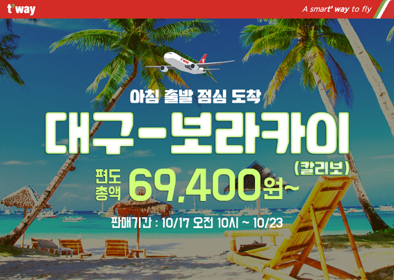 - 티웨이항공, 대구-보라카이 노선 신규 취항 특가 이벤트 실...