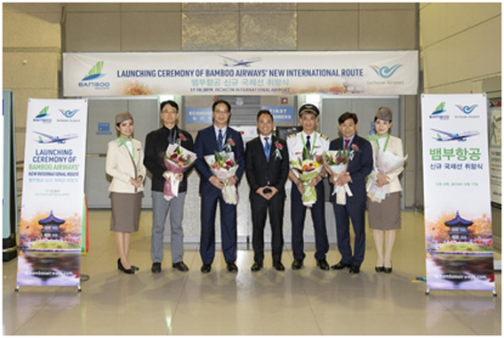 뱀부항공이 인천-다낭 노선에 취항했다(오른쪽에서 두번째가 박종필 PAA그룹 회장).