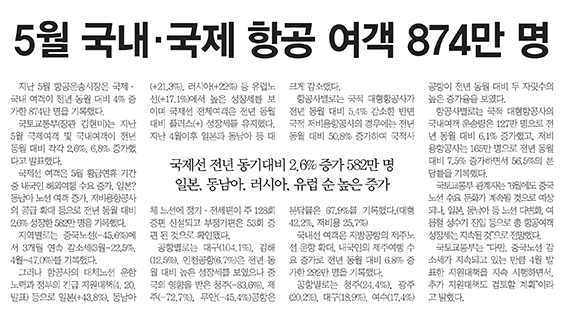 국제선 전년 동기대비 2.6% 증가 582만 명