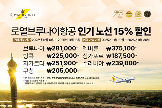 - 로열브루나이항공, 인기 노선 15% 할인 프로모션 진행