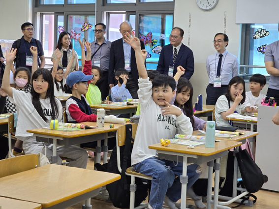 홍콩 교장단이 세종시 해밀초등학교를 방문해 기념사진을 촬영하고 있다.