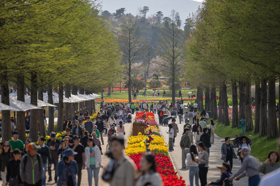 연휴를 맞아 순천만국가정원을 찾은 관람객들.