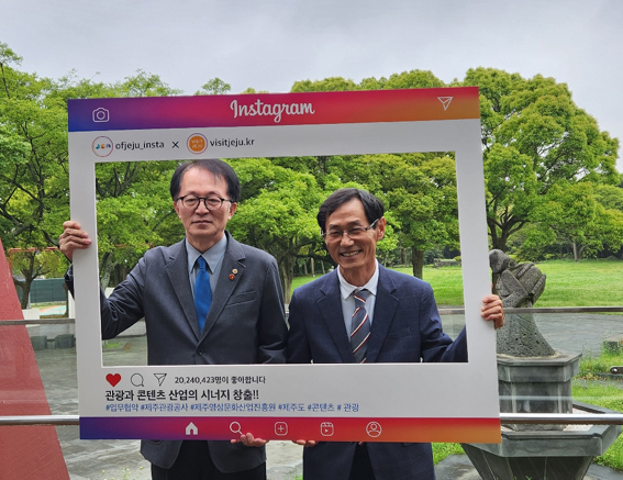 고승철 제주관광공사 사장(왼쪽)과 강민부 제주영상·문화산업진흥원원장(오른쪽)은 지난 4월 23일 콘텐츠 기반...[제1242호]2024-04-24 09:16
