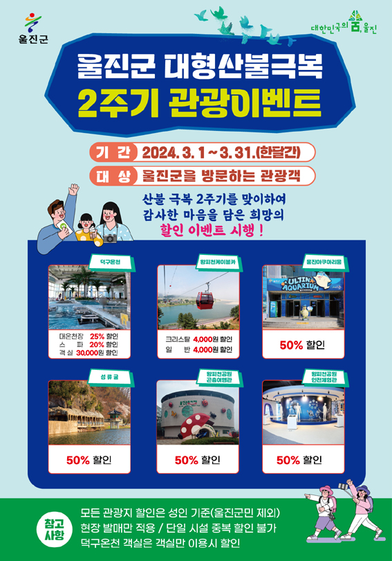 - 울진군, 대형 산불 극복 2주기 관광 이벤트 마련