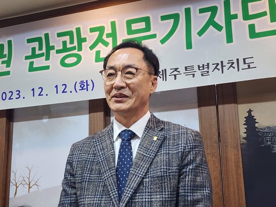 김남진 제주도관광협회 본부장이 인사말을 통해 글로벌 관광지로의 재도약을 위한 제주관광에 주력하겠다고 강조했...[제1231호]2023-12-13 11:28