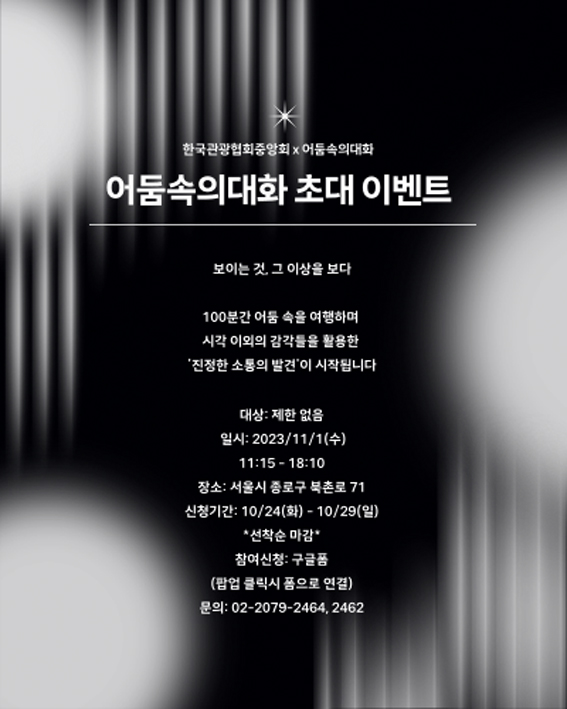 관광협회중앙회, 11월 1일 ‘어둠속의 대화’111명 초청 행사 진행