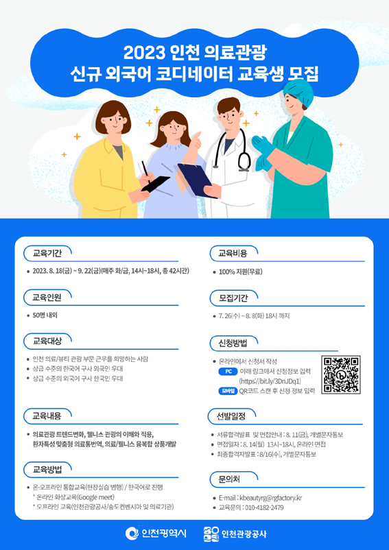- <인천 의료관광 신규 외국어 코디네이터> 교육생 모집