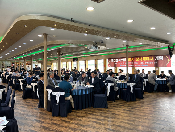 경인 아라뱃길 현대 유람선 선상에서 진행된 인천 관광정책 세미나 행사 전경.