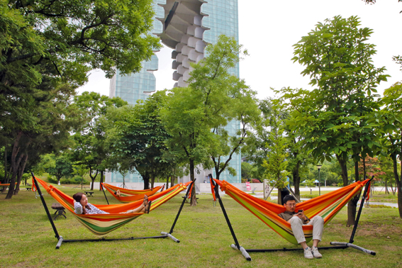 경주엑스포대공원 왕경 숲에 설치된 해먹