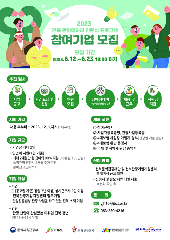 기업당 최대 2명, 월 급여의 90% 지원, 도내 관광기업 경제적 부담 완화