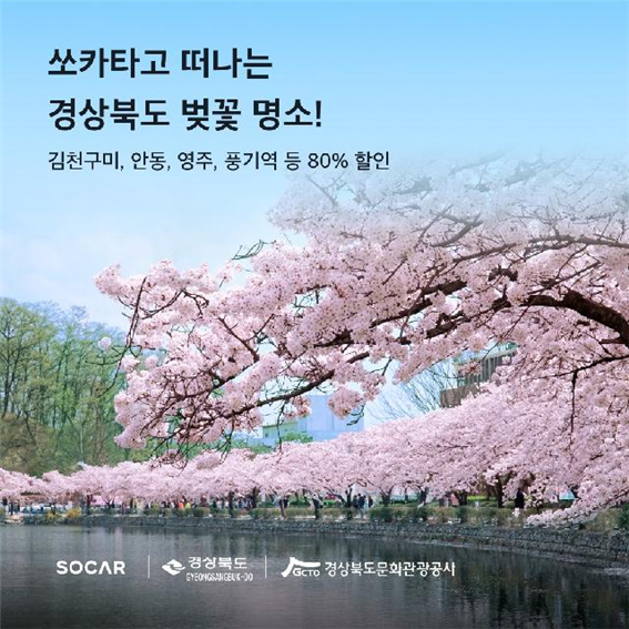 경상북도-쏘카(SOCAR) 제휴, 공유차량 대여료 80% 할인!!