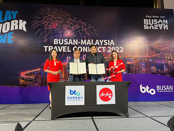 이정실 부산관광공사 사장(왼쪽에서 두 번째)이 에어아시아 엑스와의 업무협약(MOU)을 체결하고 기념사진을 촬영...[제1193호]2022-11-21 11:29