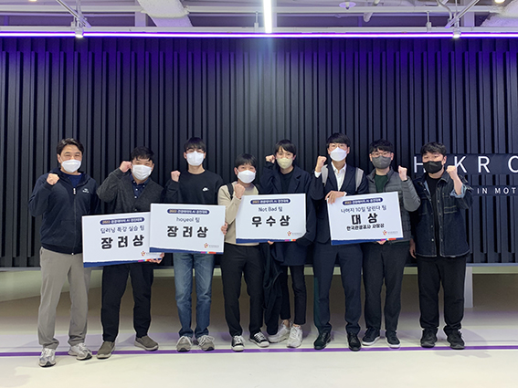 2022 관광데이터 AI경진대회 시상식에서 수상팀들이 단체 기념사진을 촬영하고 있다.