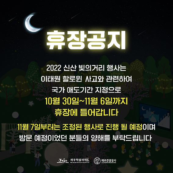 이태원 사고로 인한 국가 애도기간 선포 따라 휴장기간 연장 결정