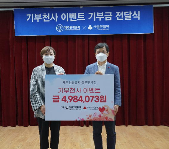 고은숙 제주관광공사 사장(왼쪽)이 지난 22일 제주웰컴센터에서 제주사회복지공동모금회에 498만원 상당의 기부금을 ...[제1190호]2022-09-26 10:17