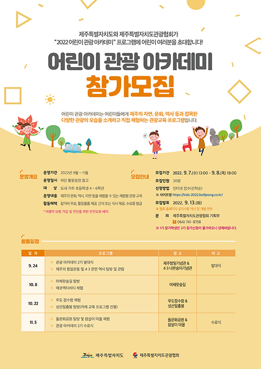 제주도관광협회, 제2기 어린이 관광 아카데미 참가자 모집