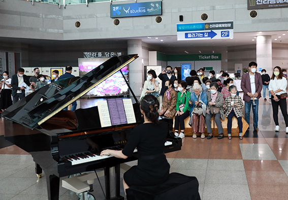 공연장 입장에 앞서 로비에서 피아노 연주가 펼쳐지고 있다.