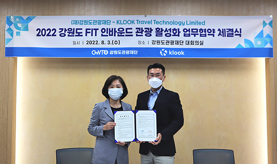 강옥희 강원도관광재단 강옥희 대표이사(왼쪽)와 이준호 클룩 한국지사장(오른쪽)이 ‘강원도 개별관광객 인...[제1184호]2022-08-04 10:58