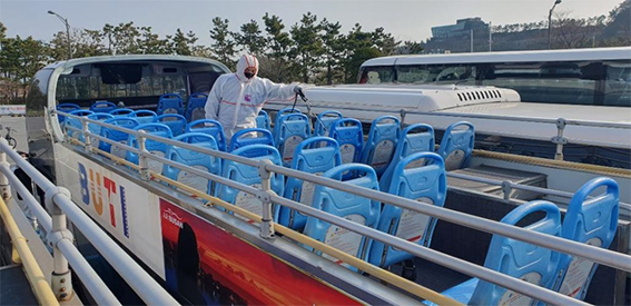 부산 안심 관광! 자동 무인 방역기가 설치돼 있는 부산시티투어로 오세요!