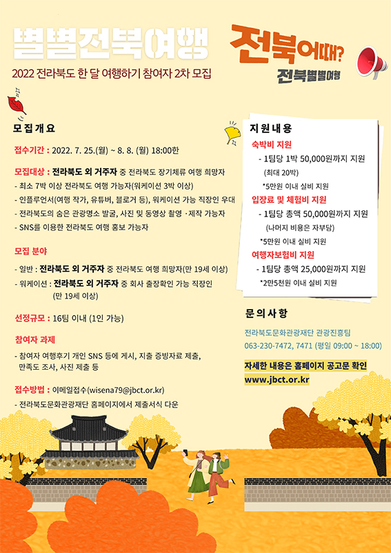 - 2022 전북 한 달 여행하기 참여자 2차 모집