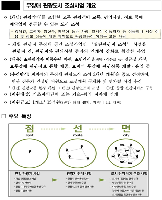 - 무장애 관광 위한 교통인프라·안내정보 등 성공 모델 구축 본격 시동