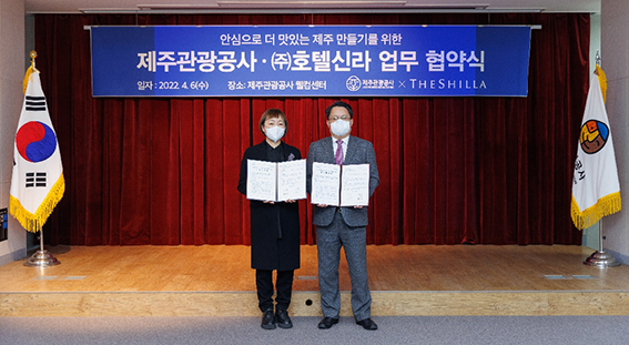 고은숙 제주관광공사 사장(왼쪽)과 하주호 호텔신라 부사장(오른쪽)이 지난 6일 제주웰컴센터에서 ‘안심으로...[제1174호]2022-04-07 10:39