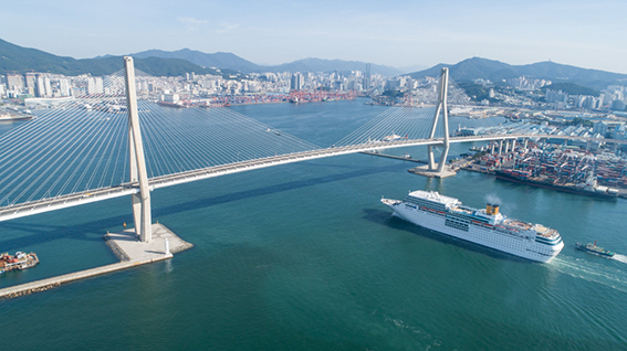 부산항대교를 지나는 크루즈 선박 <출처=비짓부산>