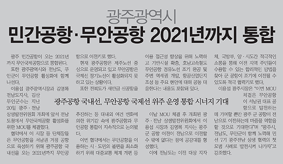 - 광주광역시, 민간공항·무안공항 2021년까지 통합