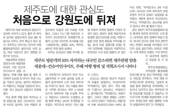 - 제주도에 대한 관심도 처음으로 강원도에 뒤져