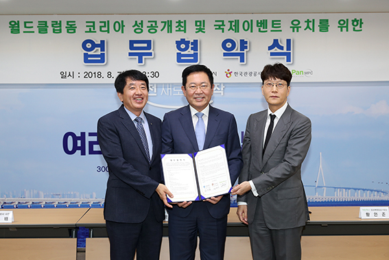 지난 7일 인천광역시청에서 안영배 한국관광공사 사장(왼쪽)과 박남춘 인천광역시장(가운데), 황인준 피터팬엠피...[제1040호]2018-08-10 10:02
