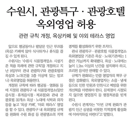 - 수원시, 관광특구·관광호텔 옥외영업 허용