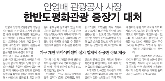 - 안영배 관광공사 사장 한반도평화관광 중장기 대처