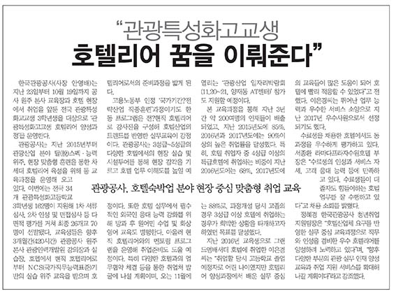 - “관광특성화고교생 호텔리어 꿈을 이뤄준다”