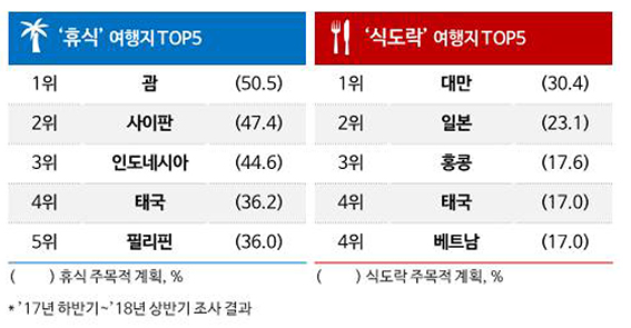 - 해외여행 볼거리 보다는 쉴거리·먹거리 선호