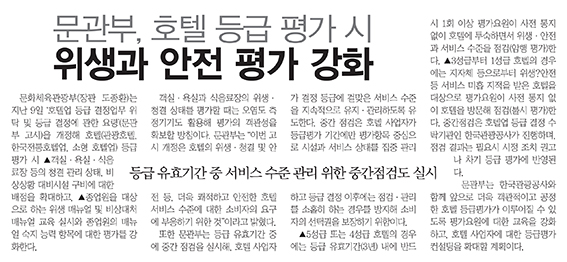 - 문관부, 호텔 등급 평가 시 위생과 안전 평가 강화