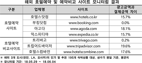 광고 금액과 실제 결제 금액 15% 이상 차이